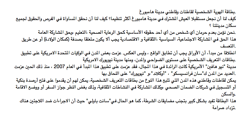 City dwellers can get this card no matter what their passport, residence status or situation of living is. The card grants them access to bank accounts, cultural participation or healthcare. Moreover it protects them from being taken into police custody because of a "wrong" paper which lots of refugees in St. Pauli have increasingly experienced since early 2016.